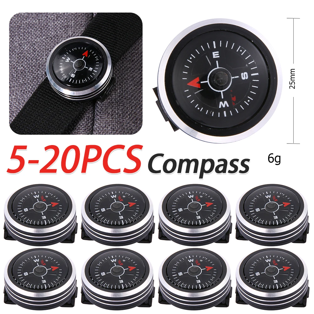 5-20PCS Mini Watch Strap Button Compass Aluminum Alloy Wristwatch Type Navigation Compass Practical Survival Tool for Climbing