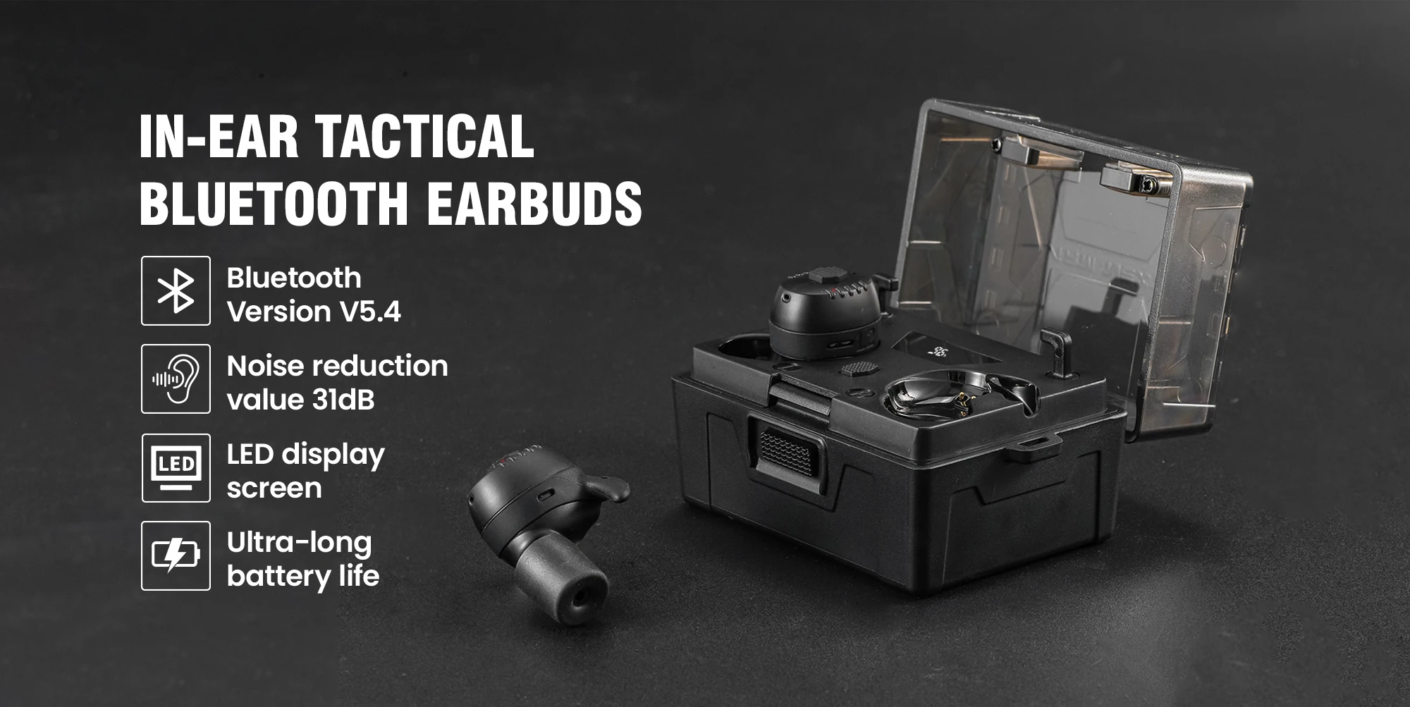 ARMNEXTShooting Earplugs ANC NRR27dBTactical Bluetooth Earbuds with Active Noise Cancelling for Hunting Military Ear Protection